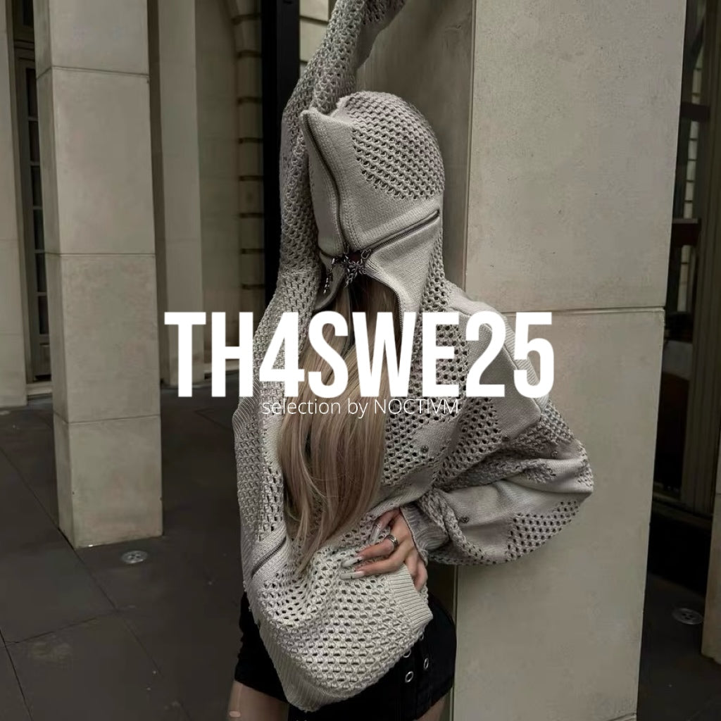 HOLLOW OUT HOODED KNIT CARDIGAN